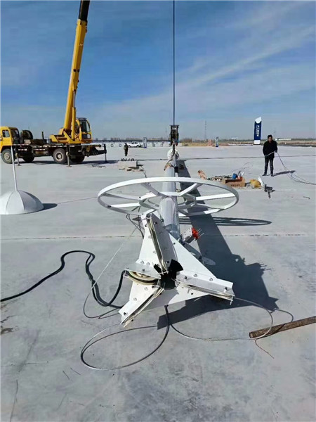 二、升降係統,高杆燈分固定式和升降式,升降式的配置了升降係統,升降係統包括卷揚機、配電盤、鋼絲繩、遙控器。需要注意的是在操作之前必須要在卷揚機裏注入相應容量的齒輪油,鋼絲繩全部要用高密度黃油進行全繩塗抹,配電盤上的接線鼻子除了固定圈以外全部要用絕緣膠布纏好以防連電,遙控器的纜線長度要超過高杆燈燈盤半徑的兩米以外。